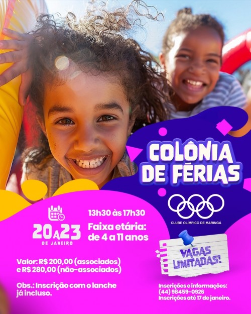 De 20 a 23 de janeiro, a criançada vai aproveitar tardes cheias de brincadeiras, esportes e muita alegria!???????????