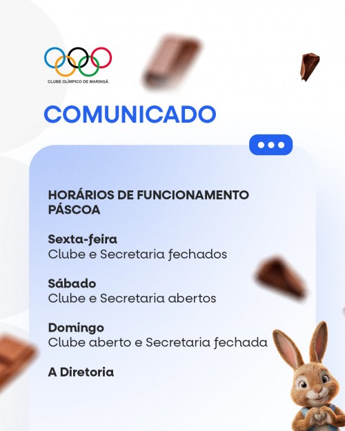 Sexta-Feira Santa (03/04/2026) - Clube e secretaria fechados. 03/04/2026